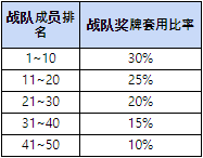 - 战队成员的奖牌(将根据奖牌数排名的比率进行套用) + 战队总活动分数(联盟卡牌捐赠 + 世界大战胜利)